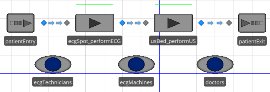 Modeling the Diagnostic Department PN with AnyLogic and Simio