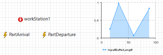 As in the implementation with Event elements described above, an object type WorkStation with an attribute inputBufferLength has first to be defined and instantiated with an object workStation1. Also, as before, a variable monitor for inputBufferLength is needed for obtaining a simulation output.